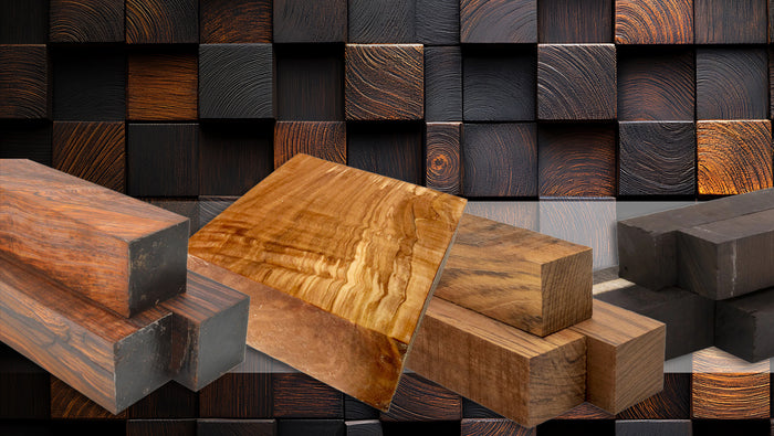 Blocs de bois exotiques en rabais. Cocobolo, Olivier, Jatoba et Grenadille d'Afrique.