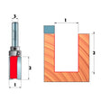 Ces mèches présentent des roulements montés au dessus du tranchant. Idéal pour le lettrage ou d'autres travaux avec gabarit, lorsque le morceau est rainuré ou évidé.