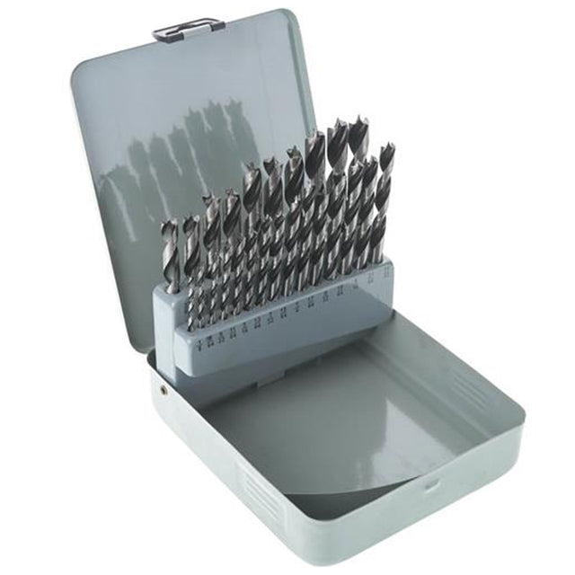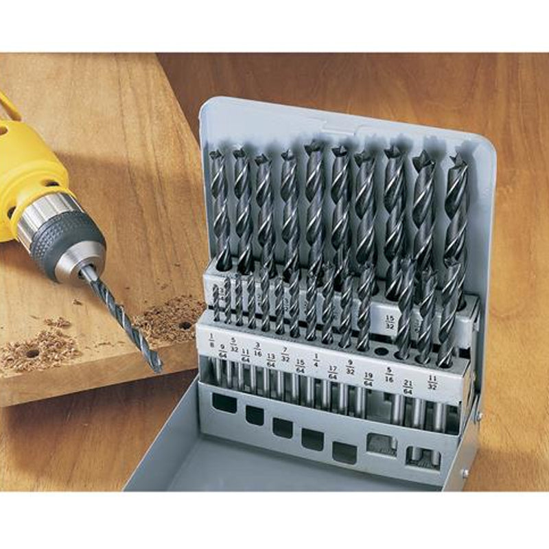 Ensemble de luxe de 25 mèches à pointe centrale. Diamètre allant de 1/8" à 1/2". Offert dans un pratique coffret de rangement en métal.