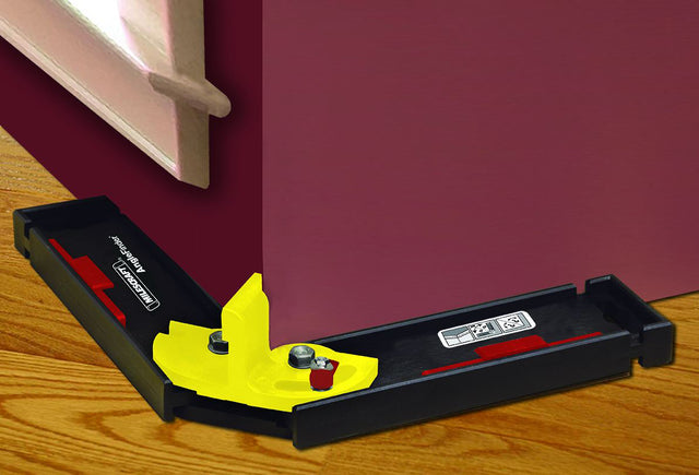 La main d'angle permet de trouver précisément et rapide un angle. Muni d'un angle diviseur jaune qui divise systématique tous les angles en 2 parties égales. Plus besoin de faire le calcul vous-même! Cet outil pratique possède aussi un lecteur d'angle facile à voir ainsi qu'un levier de serrage afin de verrouiller votre angle avant de le transférer sur votre scie pour la coupe.
