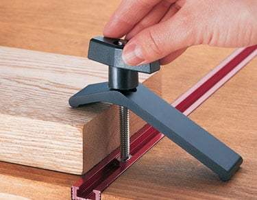 Cette serre de retenue s'utilise avec les coulisses en «T» de 3/8" de profondeur par 3/4" de largeur. La tête de la serre pivote à 180° permettant de fixer la pince sur des pièces de 0 à 3/4" d'épaisseur d'un côté et de 3/4" à 2 1/2" d'épaisseur de l'autre. Capacité maximale de serrage : 2 /12". S'utilise avec la coulisse «T» (vendu séparément).