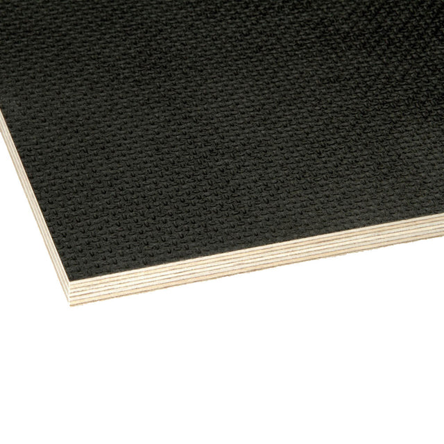 Contreplaqué recouvert d'un film phénolique sur les deux faces ou d’un film spécial résistant aux UV. La face supérieure est soumise à l'usure grâce a un treillis métallique (W), qui confère au panneau une surface antidérapante; la contre face est lisse, cependant elle peut aussi être antidérapante. Chants traités. Ce panneau antidérapant résiste à l'usure et peut être utilisé pour de nombreuses applications de contre-plaqué à plancher.