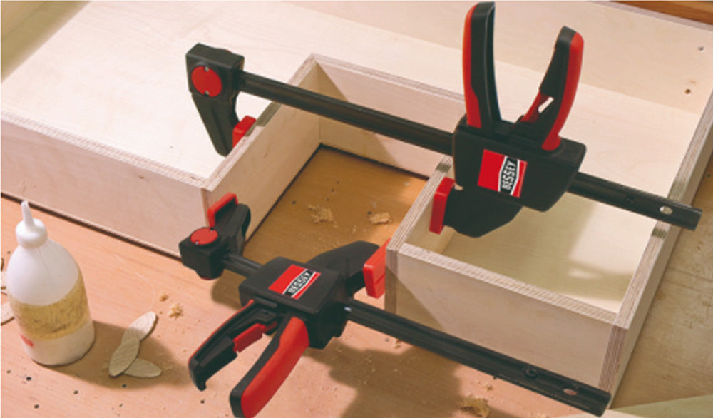 La gamme déjà très complète de serre-joints à une main de BESSEY s'étoffe encore un peu plus avec une gamme complète de serrejoints à gâchette avec poignée pistolet. Une construction robuste permettant une force de serrage allant de 40 à 600 lbs.