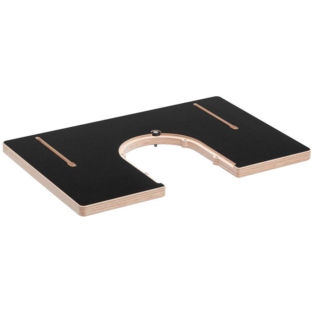 - Le plateau de la table StabilMax RT+ est usiné en contreplaqué de bouleau baltique de 2,5 cm (1 po) avec un stratifié noir micro-pointillé durable sur les deux faces