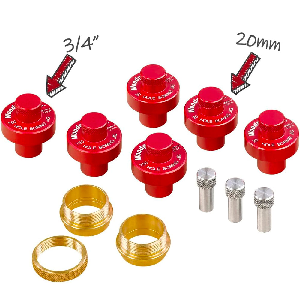 - COMPATIBLE AVEC DE NOMBREUSES NORMES - Le gabarit de perçage Woodpeckers est compatible avec les normes de 3/4" et 20 mm, offrant des douilles de guidage et des goupilles d'indexage pour les deux diamètres de trou.