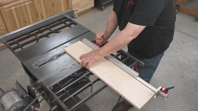 LIMITEZ LES ACCROCHAGES - L'Exact-90 est équipé de notre nouvelle butée rabattable en instance de brevet. Il suffit de la poser sur votre pièce large, de la verrouiller et la pièce soutient le guide lorsque le guide d'onglet est hors de la table. Fini les accrochages du guide arrière contre le bord avant de votre table et les coupes gâchées.