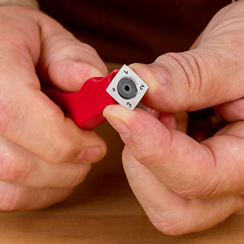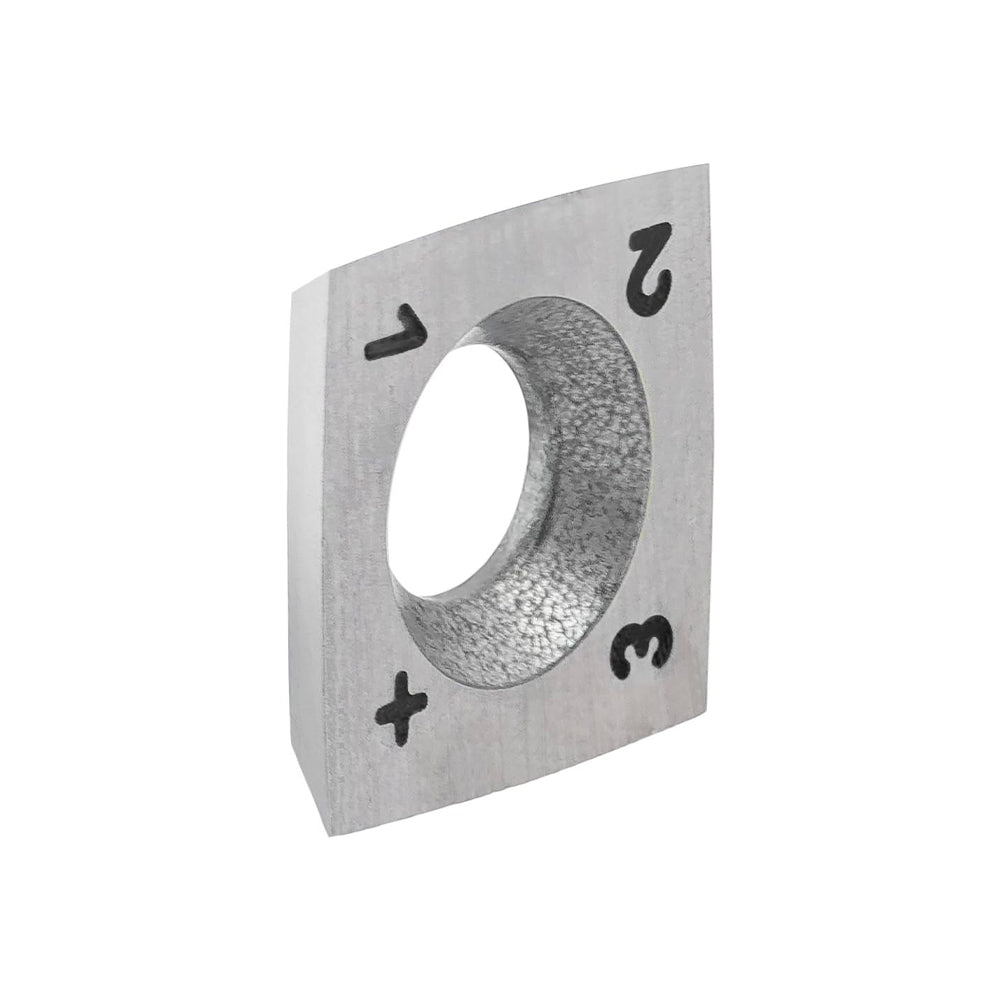 - Lame au carbure monobloc : tranchante dès le départ et durablement. Les menuisiers savent que les outils au carbure conservent longtemps leur tranchant. Il y a quelques années, les outils à plaquettes au carbure ont été utilisés pour la première fois sur les porte-outils hélicoïdaux des dégauchisseuses et des raboteuses. Ces outils offraient quatre arêtes vives sur chaque plaquette. Le mini-grattoir offre la même praticité et la même réutilisation.