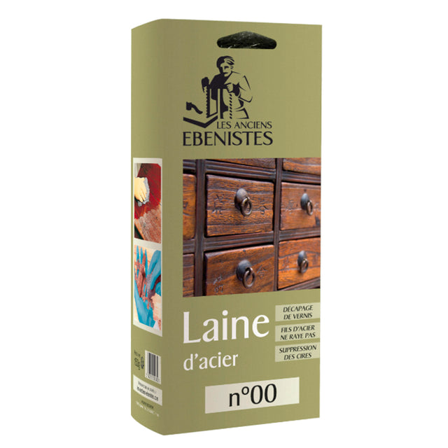 Les Anciens Ébénistes Steel Wool #00 is designed for intermediate finishing and maintenance work. Fine and efficient, it is used for sanding between coats of varnish, preparing wood before waxing, and gently cleaning surfaces. It can be used alone or with complementary products such as Popote, Wax Remover, or Desoxidizer.