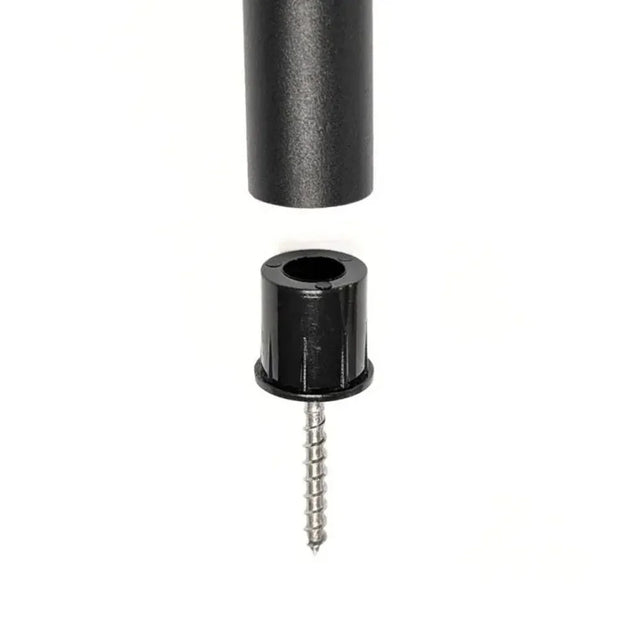Set of 20 surface connectors for the installation of 10 round balusters. Made of rigid black plastic material with steel screws, they are suitable for round balusters with a diameter of ¾ inch.