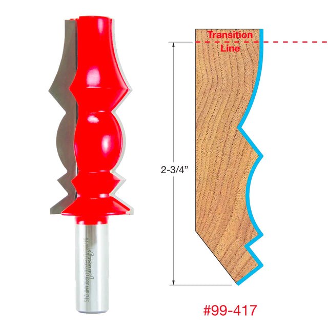 Freud's innovative Wide Crown Molding System provides woodworkers with a unique opportunity to produce 5-1/2" wide crown molding from almost any hardwood or softwood. The system consists of 6 bits: 3 for the upper half of the molding, and 3 for the lower half. Mix and match bits for upper and lower profiles to produce nine different designs. Use only in a router table with minimum 6" high fence, mill in 3 or more passes, and always use featherboards and hold downs to hold stock down & against the fence. Routs hardwood or softwood to produce stain-grade molding.