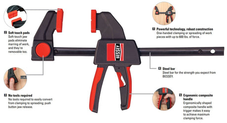 $7.25 / eachUnit price $ / each /Unavailable Set of 2 One Handed Clamps EHKL 12'' with 360 Degree Rotating Handle EZ-360 - Bessey
