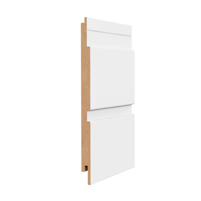 - Fiberboard (MDF) wall and ceiling paneling with a white primer. Ready to be painted. Quick and easy installation. Sold in packs of four 8-foot planks.