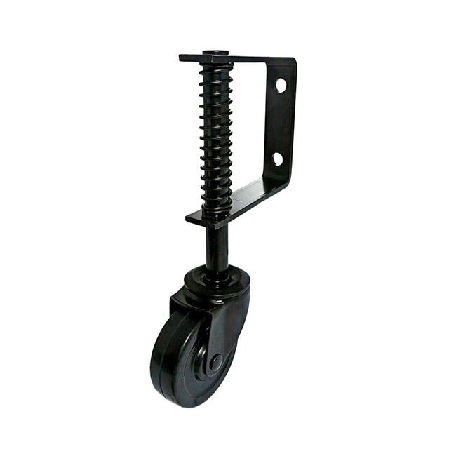 - Gate caster with barrier spring wheel. Helps reduce sag on large or heavy gates. Easy to instal