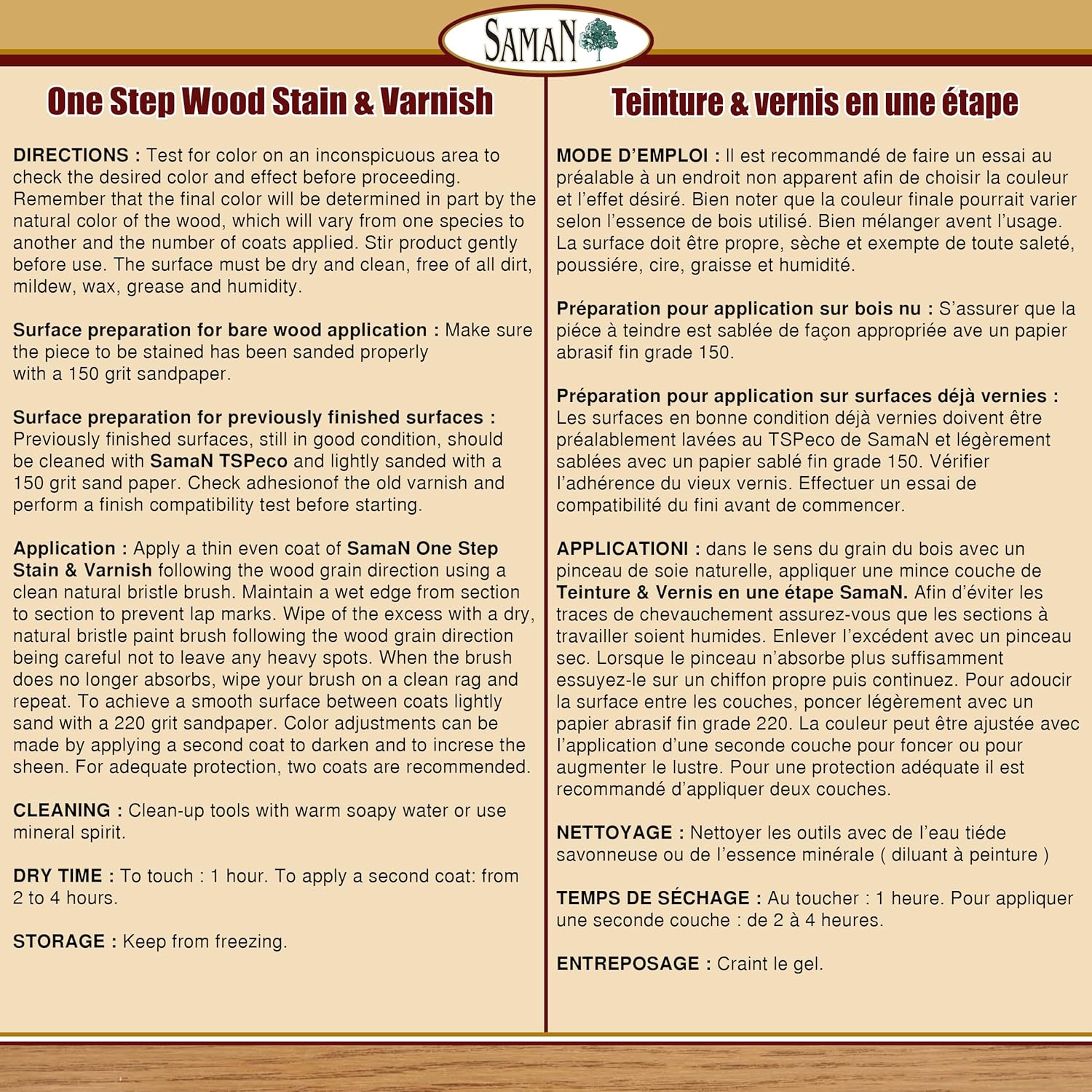 Change the color of your furniture, cabinets, and woodwork without stripping or heavy sanding. The SamaN One-Step Stain & Varnish seals, stains, and varnishes in a single application for a simple and effective makeover.