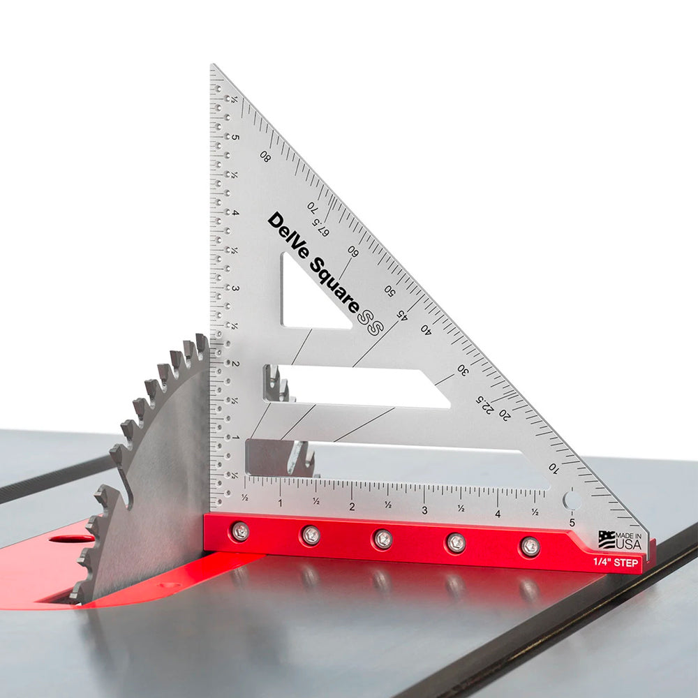 With a Delve Square in your pocket, you always have the most commonly needed set-up blocks at your fingertips. The blade is 1/8" thick and the base is 3/4" wide. Steps are milled into the base at 1/4", 3/8" and 1/2". Use whichever section you need for machinery set-up, joinery lay-out or other referencing chores.