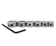 - Six piece set includes stops for 3/16", 1/4", 5/16", 3/8", 7/16" and 1/2" diameter drill bits