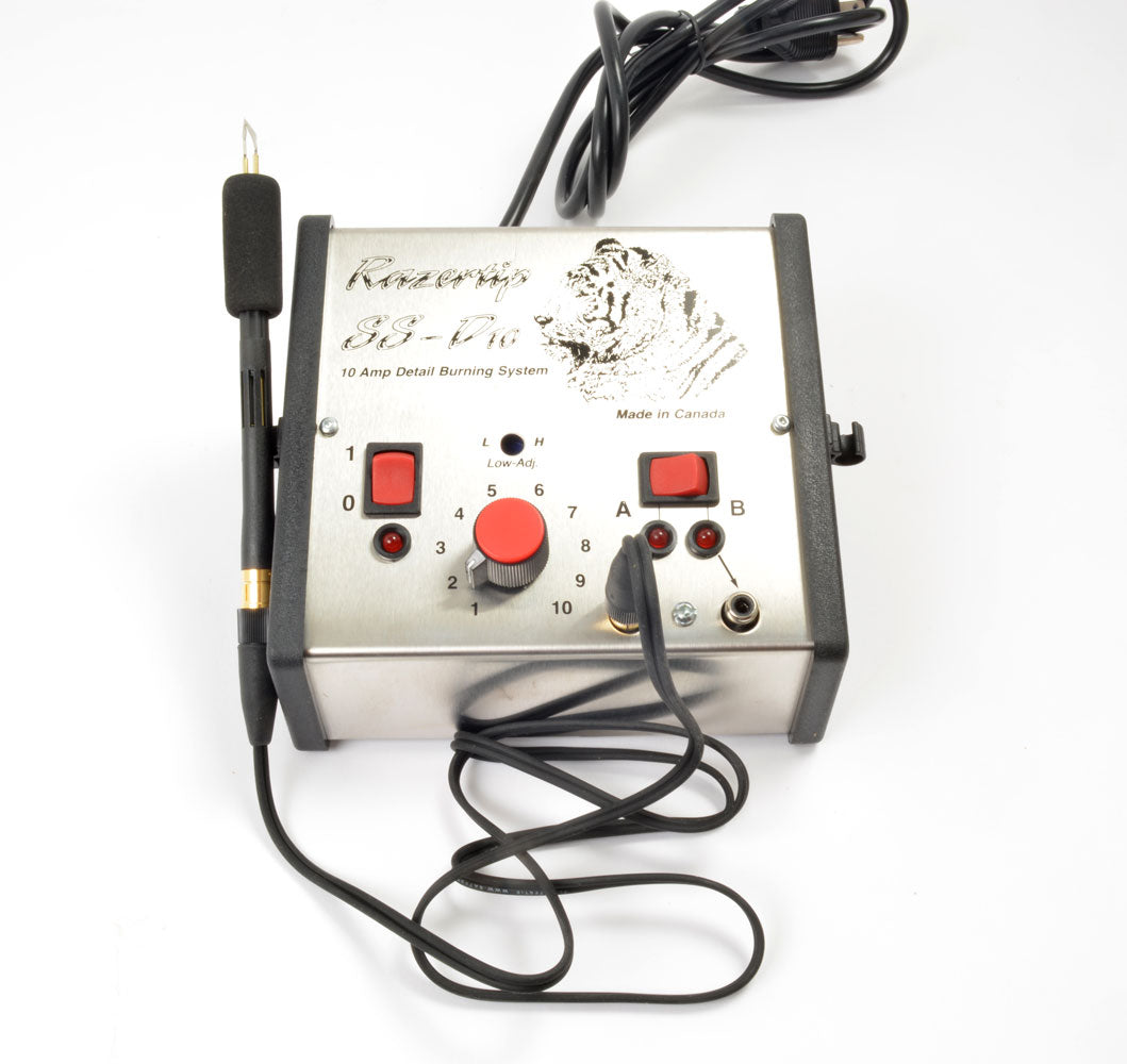 Deluxe model that makes work a lot easier. Dual handpiece capability allows you to have 2 pens plugged in at the same time and change between them at the flick of a switch. This is particularly useful if your work calls for frequent handpiece or cord changes. The SS-D10's extra lowend temperature adjustment allows you to turn the heat down further if the "1" setting is still too hot. If you are sculpting wax or detailing plastics, you will love the extra range available on the low end of the SS-D10. Also equipped with 2 lateral supports to hold fixed-tip standard pen.