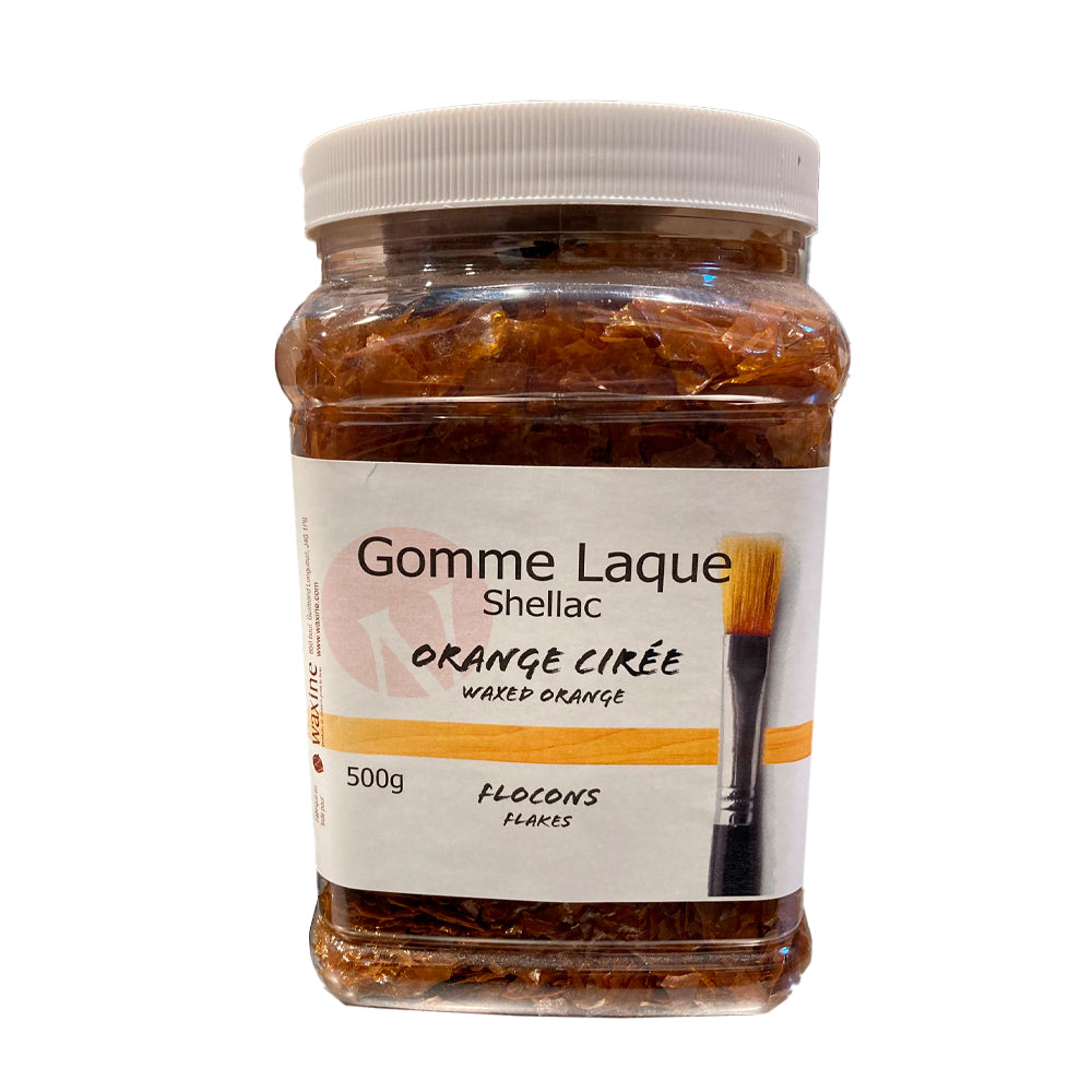 Orange waxed shellac flakes are a traditional natural wood finish, supplied in flake form and soluble in denatured alcohol (Waxine shellac thinner). Versatile and easy to use, they can be applied both as a sealer coat or as a protective varnish for interior wood projects.