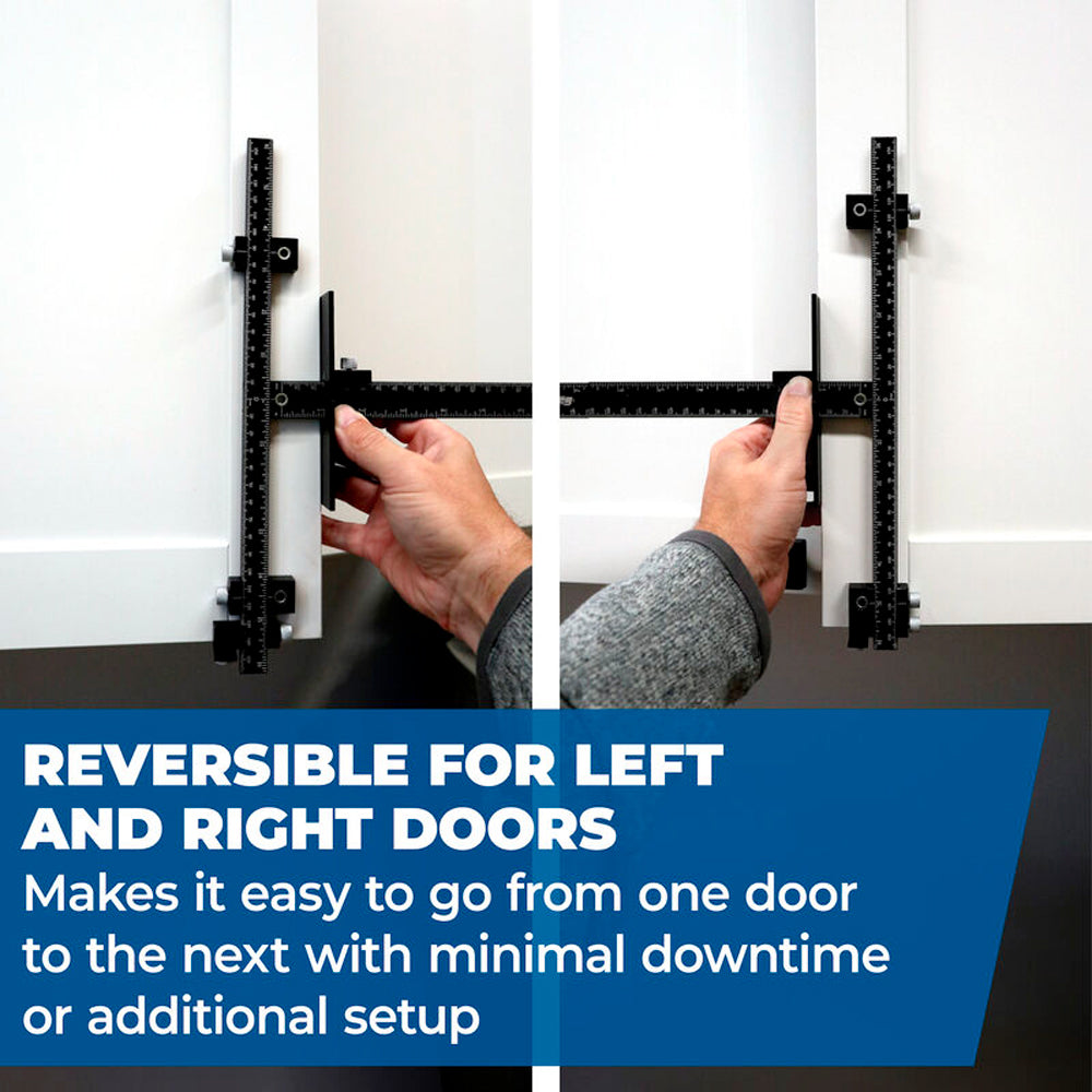 Patent-pending dual-contact points increase stability and accuracy, while built-in depth stops and reversible settings make it easy to place hardware on drawers or left/right doors without remeasuring. Whether you’re updating kitchen cabinets or outfitting new built-ins, the Cabinet Hardware Jig Pro XL ensures fast, frustration-free results every time.