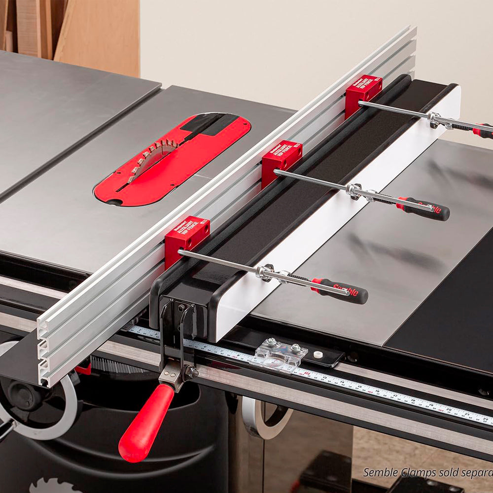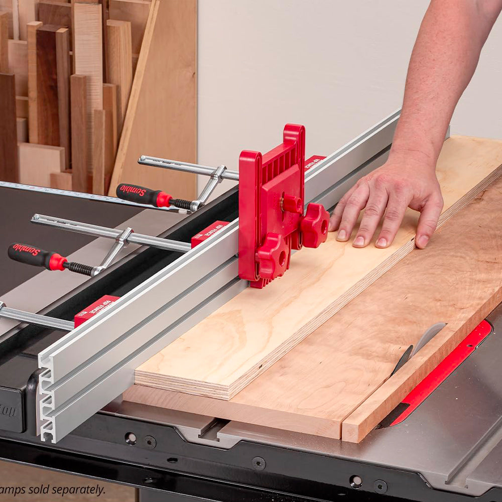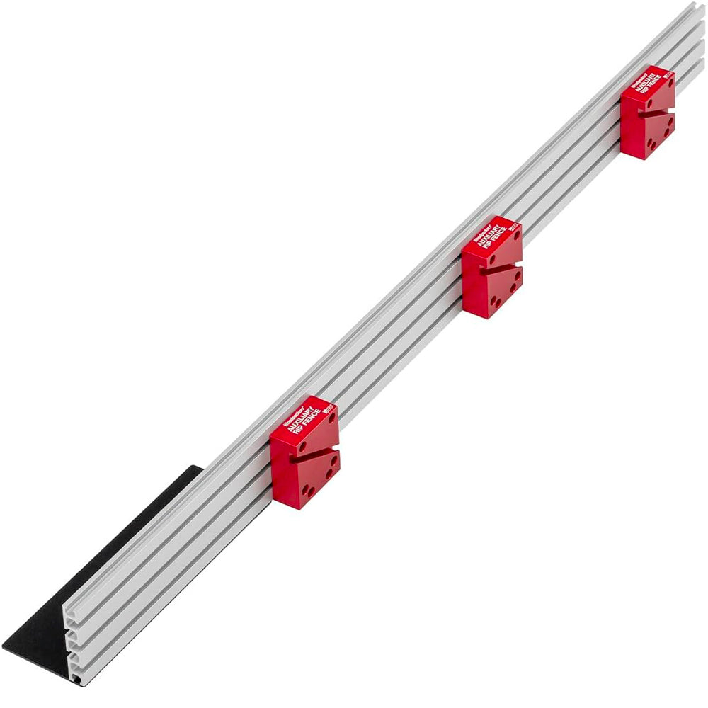Contrairement aux faces des guides en contreplaqué qui peuvent se déformer et se tordre sous l'effet des variations de température et d'humidité, la conception en aluminium extrudé nervuré du guide parallèle auxiliaire offre une stabilité inébranlable. Fixé sur votre guide parallèle standard, ce guide offre une surface plus droite et plus robuste, réduisant ainsi le besoin d'équilibrer la pièce lors de son passage dans la lame. Avec une longueur de 48 pouces et une hauteur de plus de 3-1/2 pouces, il offre un support suffisant pour les projets plus importants et est idéal pour s'attaquer à tout, des feuilles de contreplaqué aux longues planches.
